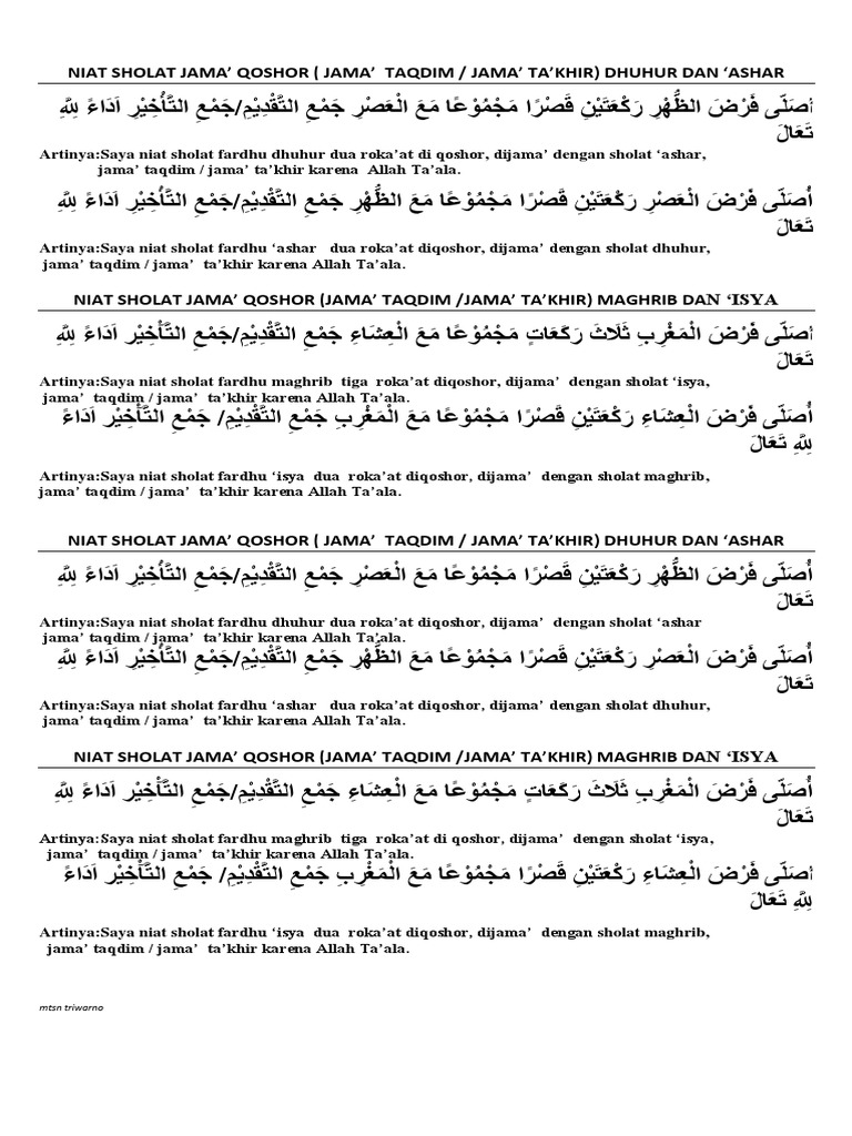 Niat sholat jamak takdim maghrib dan isya (dilakukan saat waktu maghrib). Niat sholat jamak maghrib dan isya.tata cara bacaan niat shalat jamak dan qashar takhir taqdim dhuhur ashar maghrib isya shalat jamak adalah salah satu satu keringanan dalam beribadah wajib 5 waktu yang boleh di laksanakan apabila sudah memenuhi syarat dan ketentuan yang telah di tetapkan yaitu harus sedang berada dalam perjalanan dan bukan bertujuan untuk maksiat. Jamak taqdim dan di qasarkan (dipendekkan) 1.melakukan sembahyang isyak dalam waktu magrib itu dinamakan jamak takdim. Begini niat dan tata cara jamak takhir sholat maghrib dan sholat isya: Berikut adalah doa niat sholat jamak takhir dalam bahasa arab, latin dan artinya ke dalam bahasa indonesia sekaligus tata cara shalat jamak takhir. Bagaimana tata cara sholat jamak qashar maghrib dan isya. Hukum shalat jamak adalah boleh bagi. Tuliskan niat sholat jamak dan qosor arab dan latin nya … Niat shalat jamak taqdim dhuhur dan ashar serta maghrib dan isya bagi sobat yang sering bepergian jauh maka ilmu fiqih yang berkaitan tentang niat menjamak shalat sebaiknya harus dipahami dulu karena ketika kita dalam perjalanan jauh diberikan rukhshah atau keringanan untuk menjamak dan juga mengqashar shalat.