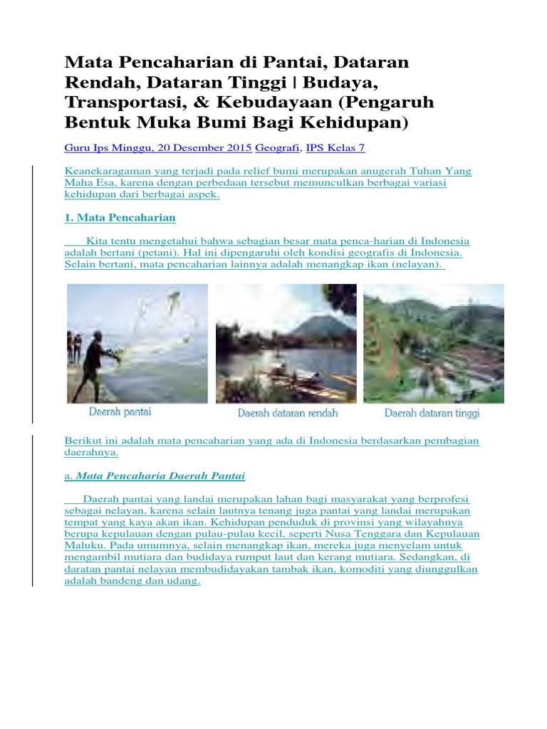 Inilah 5+ prospek kerja ekonomi pembangunan yang menguntungkan. Pekerjaan di dataran tinggi ternyata tidak hanya menanam sayur saja, tetapi ada beberapa bidang yang bisa anda tekuni untuk meraih masa depan yang lebih baik. Di daerah sampalan kita bisa menemukan berberapa rumah industri tahu dan tempe, mulai dari rumah industri sampai ke pedagang pedagang kecil yang memanfaatkan tahu. Ketinggian 500 meter di aats permukaan laut dan memiliki suhu yang sejuk. Kondisi geografis suatu wilayah juga memengaruhi mata pencaharian masyarakat sekitar. Tulis perbedaan yang kamu temukan dari ketiga tempat tersebut. Aktivitas masyarakat sangat dipengaruhi oleh kondisi geografis yang ada di sekitarnya. Kalau anda bermaksud bekerja di kawasan dataran tinggi, kenapa tidak menjadi pemandu wisata saja. Penduduk yang ada di daerah dataran rendah banyak yang berprofesi sebagai;