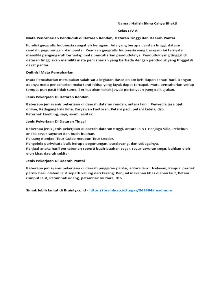 (mengkomunikasikan) siswa membaca senyap, bacaan tentang ulil si daun teh. Mungkin kalian bisa memilih slaah satu peluang bisnis yang admin berikan di atas, dengan ini maka kalian akan mendapatkan banyak keuntungan yang sangat melimpah. Karena itu, setiap daerah memiliki aktivitas yang berbeda dan tentunya memiliki kegiatan ekonomi yang berbeda juga. Potensi sumber daya alam di daerah dataran tinggi antara lain adalah Jenis pekerjaan di dataran rendah lebih bervariasi dibanding dataran tinggi. Ketinggian kurang dari 200 meter di atas permukaan laut. 4 rahasia melamar pekerjaan perusahaan asing di indonesia. Dataran tinggi sendiri adalah permukaan bumi yang mempunyai ketinggian di atas 700 meter di atas permukaan laut. 10 contoh pekerjaan yang ada di dataran tinggi atau pegunungan.